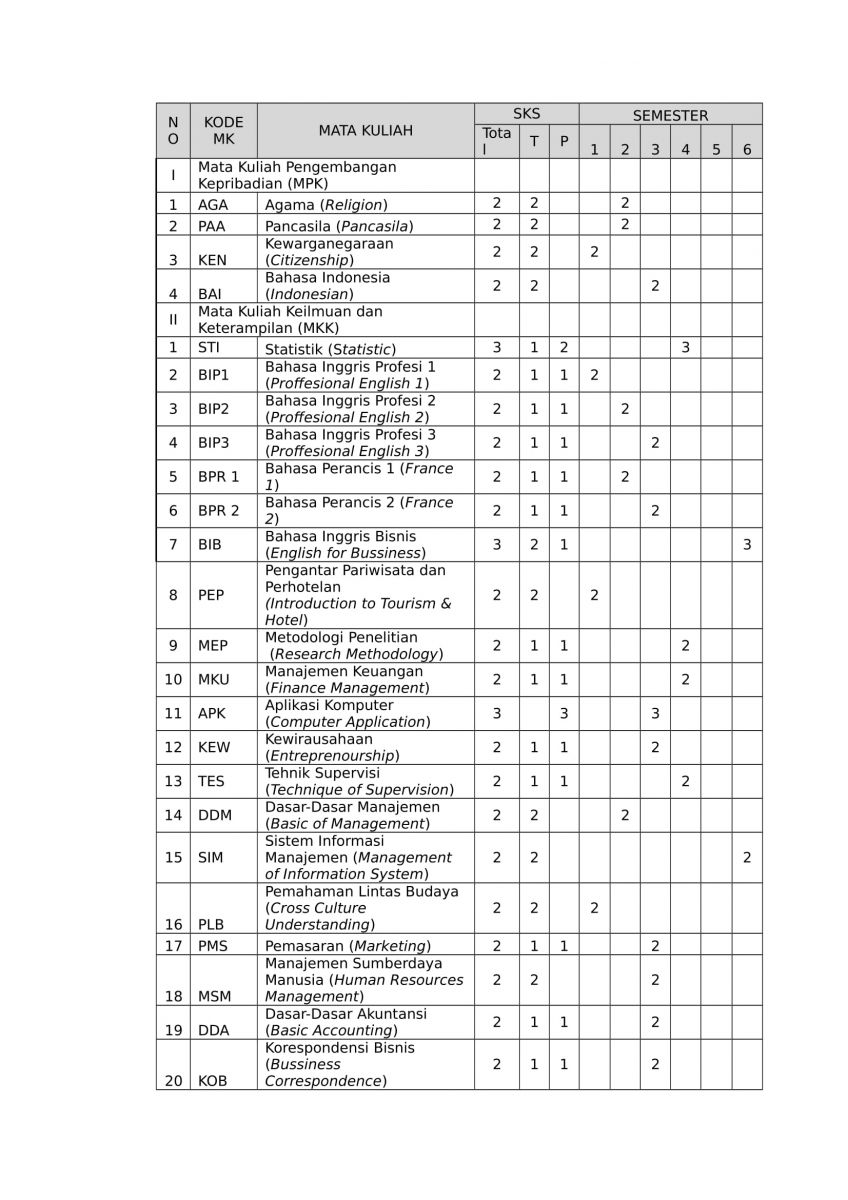 Diploma III Hotel Management